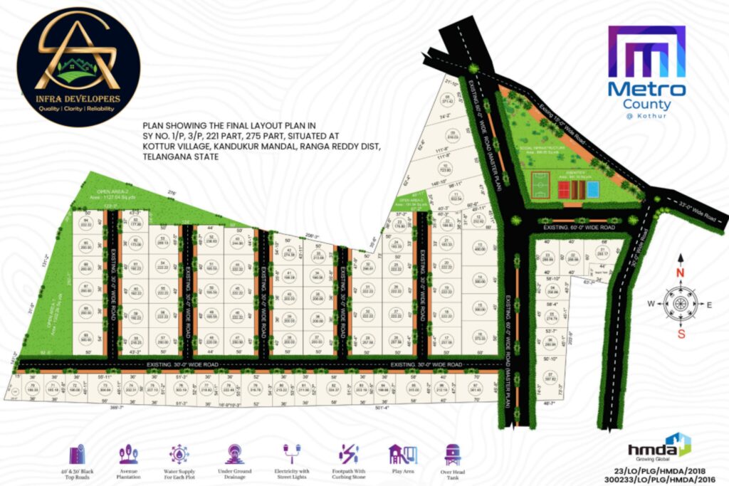 With multiple successful ventures, SA Infra Developers has built a strong reputation for legally compliant layouts, transparent processes, and customer-centric development. Every project is strategically planned, HMDA-approved, and executed with best-in-class infrastructure to ensure long-term appreciation and peace of mind.